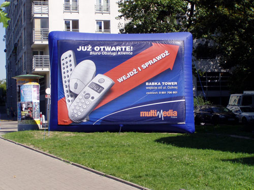 Montaż i Demontaż Ekranu Reklamowego następuje po rozwinięciu i podłączeniu Ekranu do gniazdka 230V~. Pozwala to na stwierdzenie ze Mobilny gadżet reklamowy jest gotowy do uzycia juz po okolo 5-10 minutach od wypakowania z torby transportowej (w zalezniści od wielkości Pompowca).